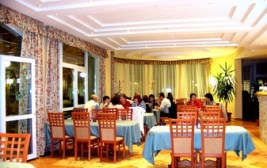 A szálloda étterme a hagyományos magyar ételekkel várja vendégeit.