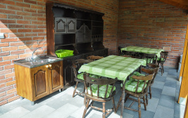 A kertben grillező hely, bogrács, közös kültéri terasz.
