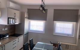 Mieszkanie składa się z jednej sypialni i przestrzeni dziennej z miejscami do spania (rozkładana sofa), w pełni wyposażona kuchnia z częścią jadalną, łazienka z prysznicem (dostępne ręczniki), 2 toalety.