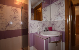 Sypialnia z łóżkiem małżeńskim z materacem medycznym, pościelą, małą szafą, telewizorem LCD. Sypialnie wyłożone są parkietem laminowanym. Pokój dzienny z rozkładaną dwuosobową sofą, pościelą, telewizorem LCD z 50 kanałami satelitarnymi oraz dużą szafą dwudrzwiową. W salonie położono parkiet laminowany. Łazienka z prysznicem, umywalką, lustrem, ręcznikami, suszarką do włosów, mydłem w płynie. Łazienki są wyłożone kafelkami. Toaleta, bidet, umywalka, ręcznik, papier toaletowy. Toalety są wyłożone kafelkami. Kuchnia z jadalnią, stół jadalny, 4 krzesła, wyposażenie kuchni (czajnik, ekspres do kawy, płyta elektryczna, okap, zmywarka, toster, kuchenka mikrofalowa, lodówka, naczynia, talerze, sztućce, deska do krojenia, kosz na śmieci ). Jadalnie są wyłożone kafelkami.